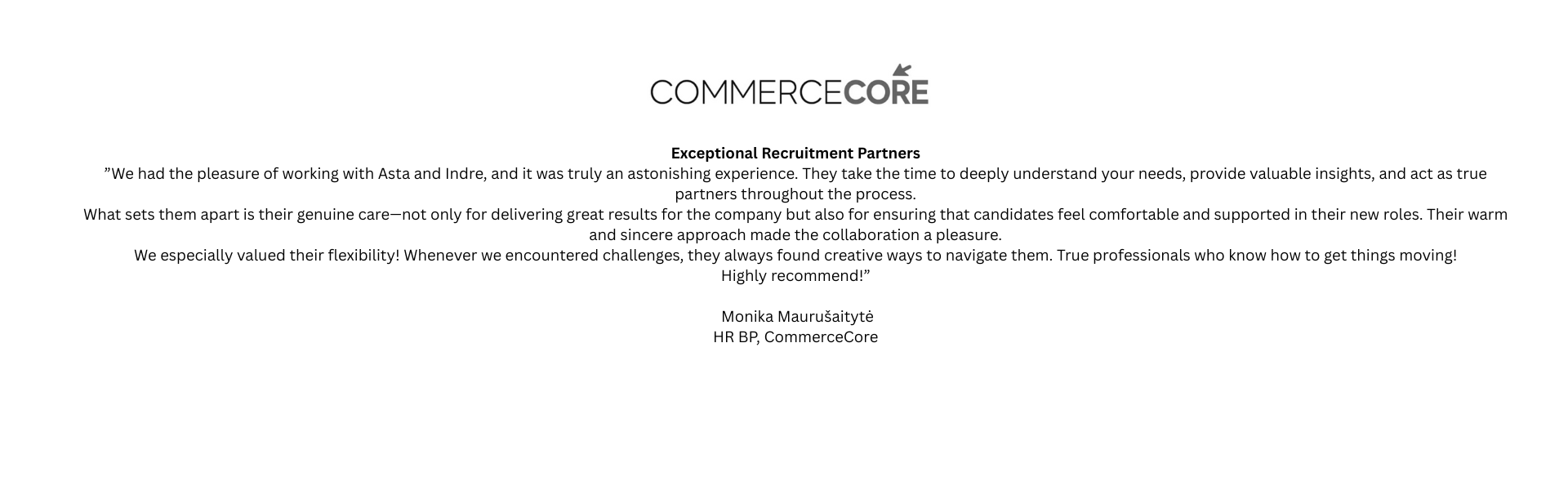 Motyvacija: "Mane motyvuoja nuolat besikeičianti IT rinka ir galimybė mokytis apie naujausias technologijas bei rinkos tendencijas, kad galėčiau kuo geriau suprasti kandidatų ir įmonių poreikius. Didžiausią džiaugsmą teikia bendravimas su talentingais specialistais ir galimybė padėti jiems atrasti savo karjeros pokytį, kuris atitinka jų tikslus bei ambicijas."